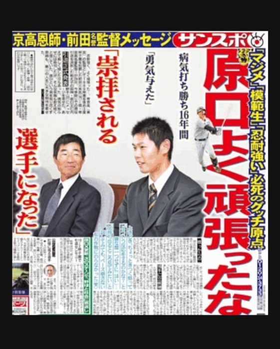 他からの引用をお許しください。 どうしてもなんかグッときてしまいました。多分ドラフト指名時の前田監督と原口君の写真。本当、根から優しそうな前田監督にまだあどけない表情の原口選手。 本当に本当に素晴らしい、誰からも愛される尊敬されるプロ野球選手になりました。こういう人格者が帝京野球部OBでいてくれて誇らしいし嬉しいです。 嫌な事や人が避ける事も率先してやり抜く原口選手。 なんか、益々引退後には帝京高校に戻って選手達を指導してほしくなっちゃいました。原口コーチがいたら、中学生も帝京入りたくて雑踏するかも(笑)content_copy Comment ID: 20859
