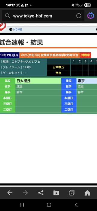 • ここからが重要。城東はそつなく勝ってきてる。投手はけん制もうまい、捕手も肩強いので、今日みたいに簡単に走れない。しっかり、1点を大事にしていかないと危険です。総合力はもちろん帝京のほうが上だと見てて思いますが。