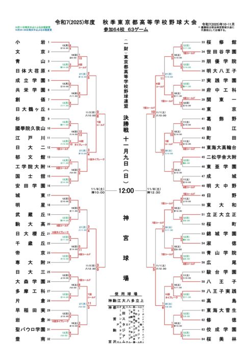 関東一VS桜美林高校の勝者との今年の東京地区大会の決勝は、帝京高校VS国士舘高校の勝者が、神宮も勝ち取って、甲子園にも順当に出場を遂げて欲しいところです