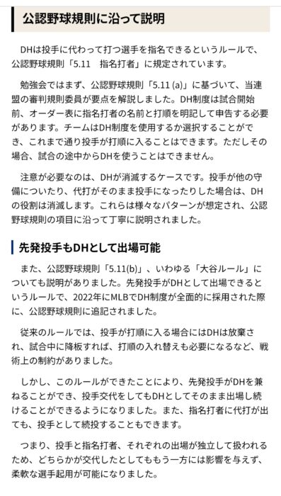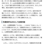 • DHを実際に使うかどうかはチームが選択でき、いわゆる大谷ルールも使用することができる