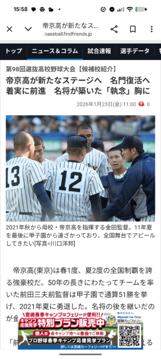 >で、やっぱり今年の春休みに開催される甲子園ではどう転んでも帝京高校の甲子園再出場は絶対だし
