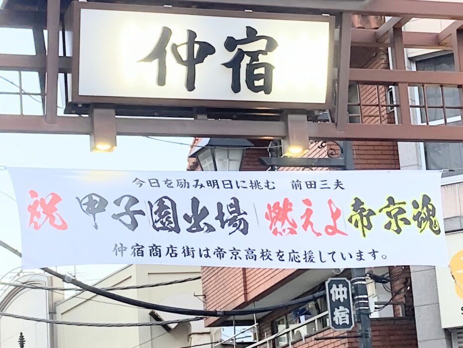 何回も見に行ってしまいます 仲宿商店街の横断幕 帝京魂の文字が気に入ってます