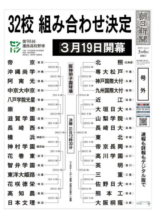 帝京高校は今年の春休みに開催される甲子園の1回戦の対戦相手は、開幕試合で沖縄尚学ですね