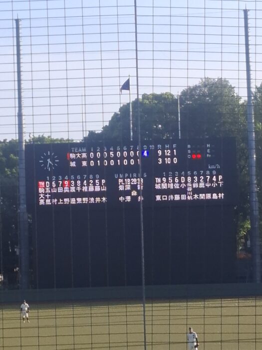 さすが帝京と二松を倒したチーム同士、なかなか良い試合をしていましたが5回裏に四球、死球で満塁から岩倉追加点でなお攻撃中の5+0。